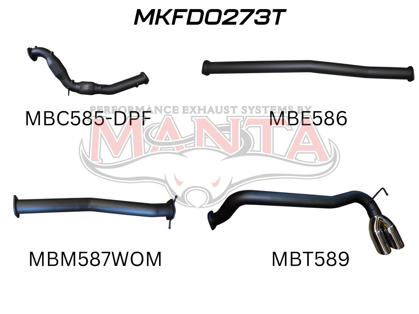 Ford PX2 Ranger 3in Turbo Back With Cat & Without Muffler, Twin Tip Side Exit