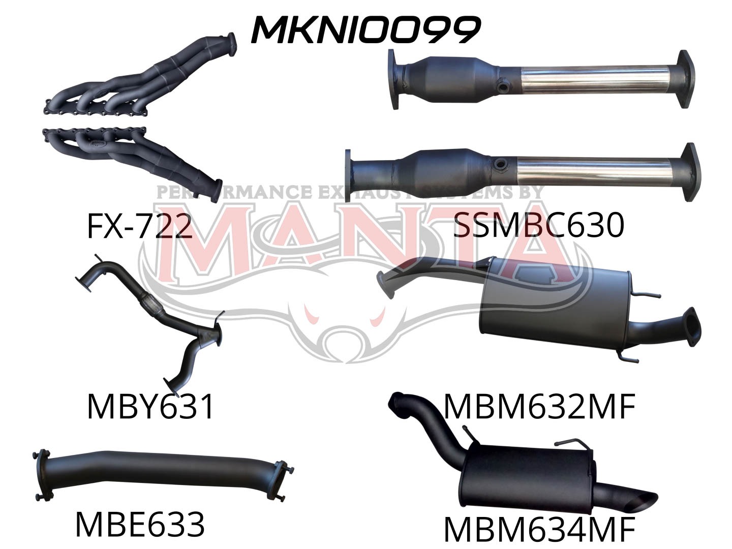 Nissan Patrol Y62 V8 5.6L Wagon 3in Full Exhaust System – Extractors, Hi Flow cats, muffler centre