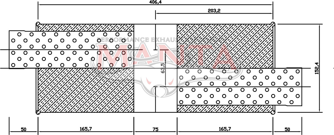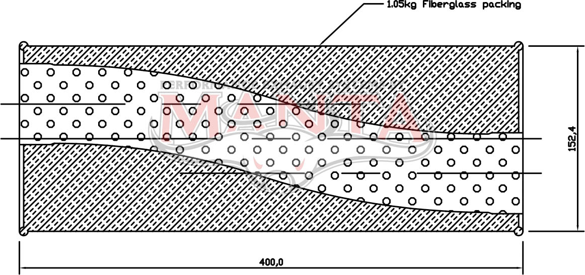 2 1/2in, 6in Round Offset/Offset, 16in (400mm) Long, Megaflow Muffler – Medium – Aluminised Steel