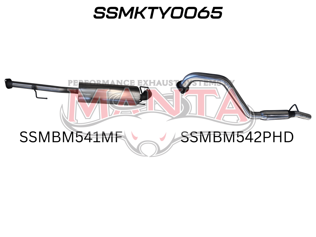 Toyota Hilux N70 GGN 4.0L V6 2.5in Cat Back Exhaust, Centre Muffler, Rear Hotdog