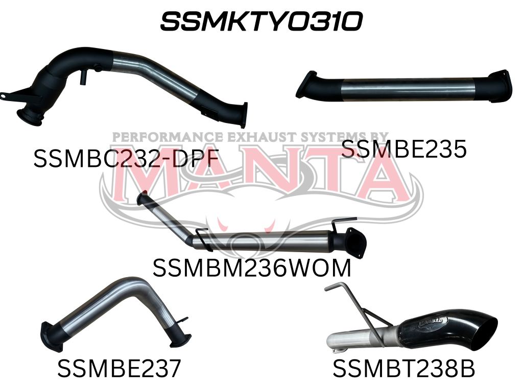 TOYOTA LANDCRUISER 300 SERIES V6 3IN TURBO BACK WITH CAT & WITHOUT MUFFLERS, BLACK 4IN TIP