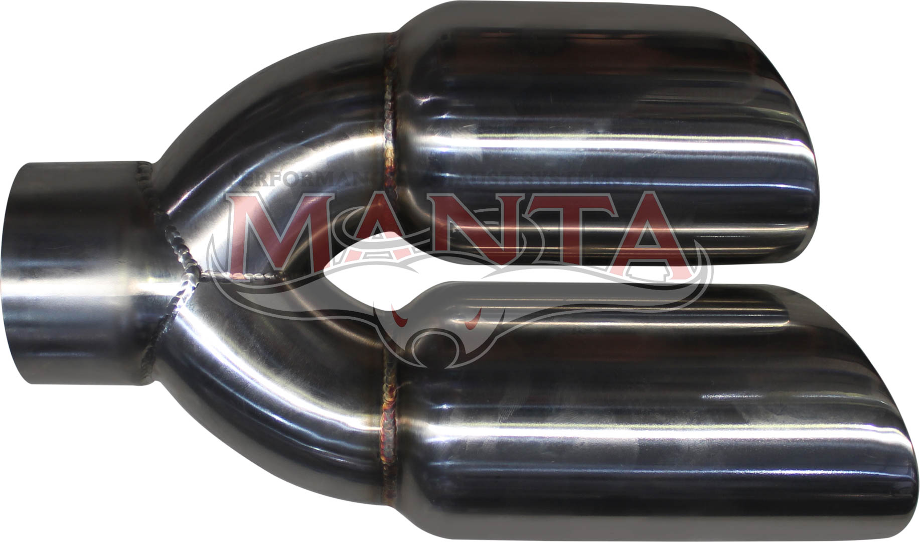 76.2mm ID (3") Flared Inlet, Twin 3 1/4in Round Outlet,10.5in Long, LHS Double Angle Cut, Inner Cone