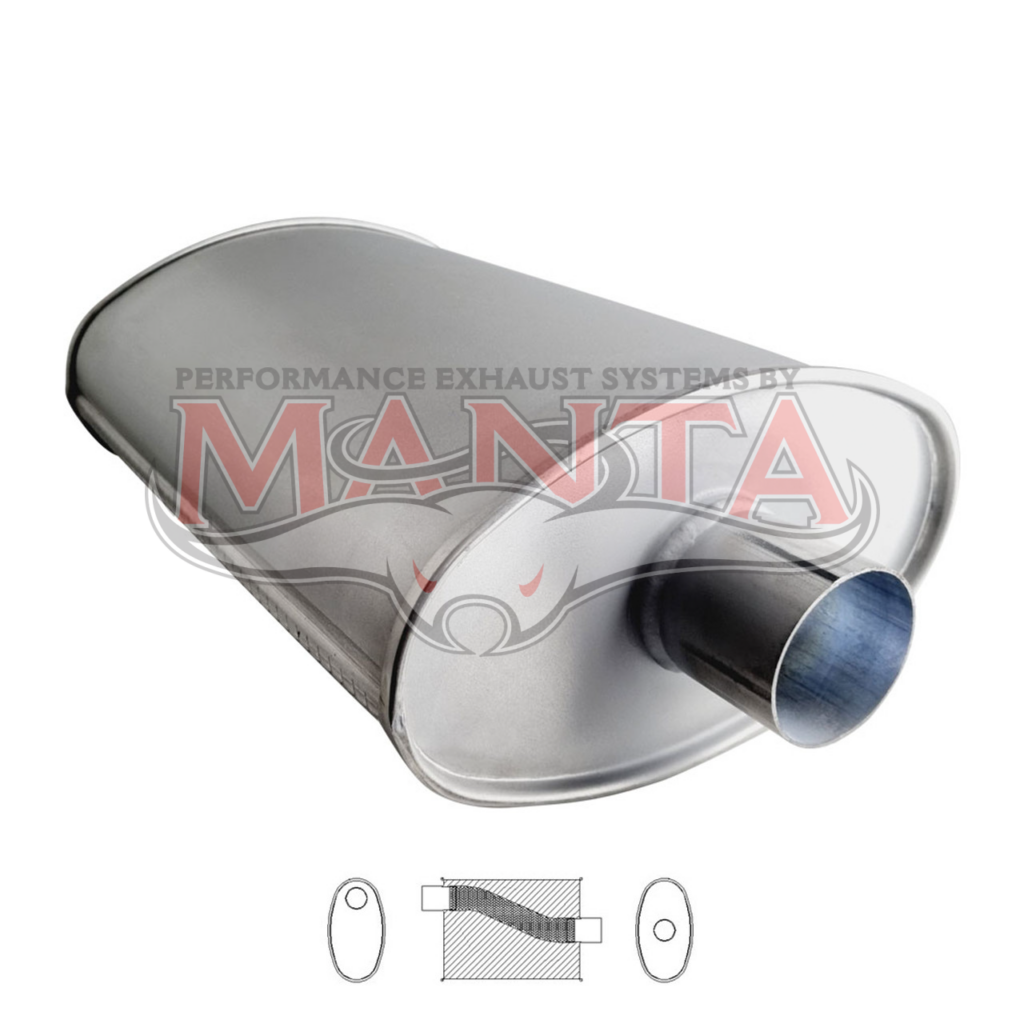2 1/2in, 11in x 6in Oval Offset/Centre, 18in (450mm) Long, Megaflow Muffler - Medium - Aluminised