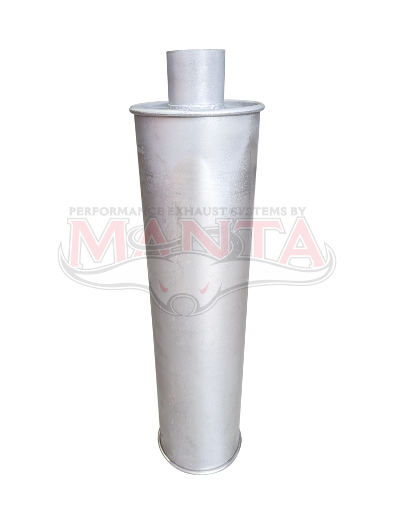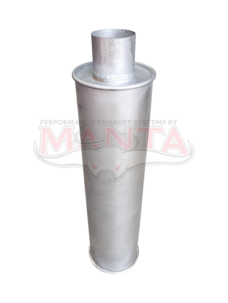 2 1/4in, 6in Round Centre/Centre, 24in (600mm) Long, Baffled Muffler - Quiet - Aluminised Steel